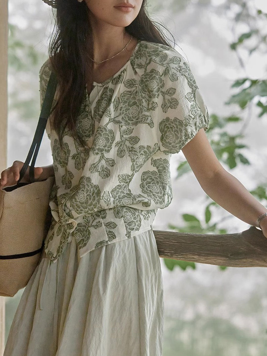 Julia Loose Crew Neck Puff Sleeve Top