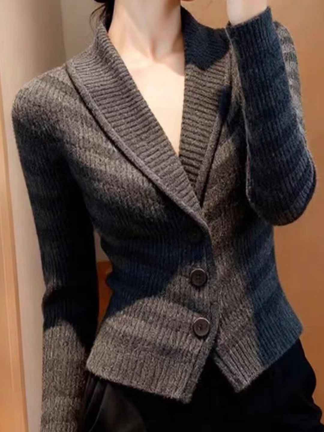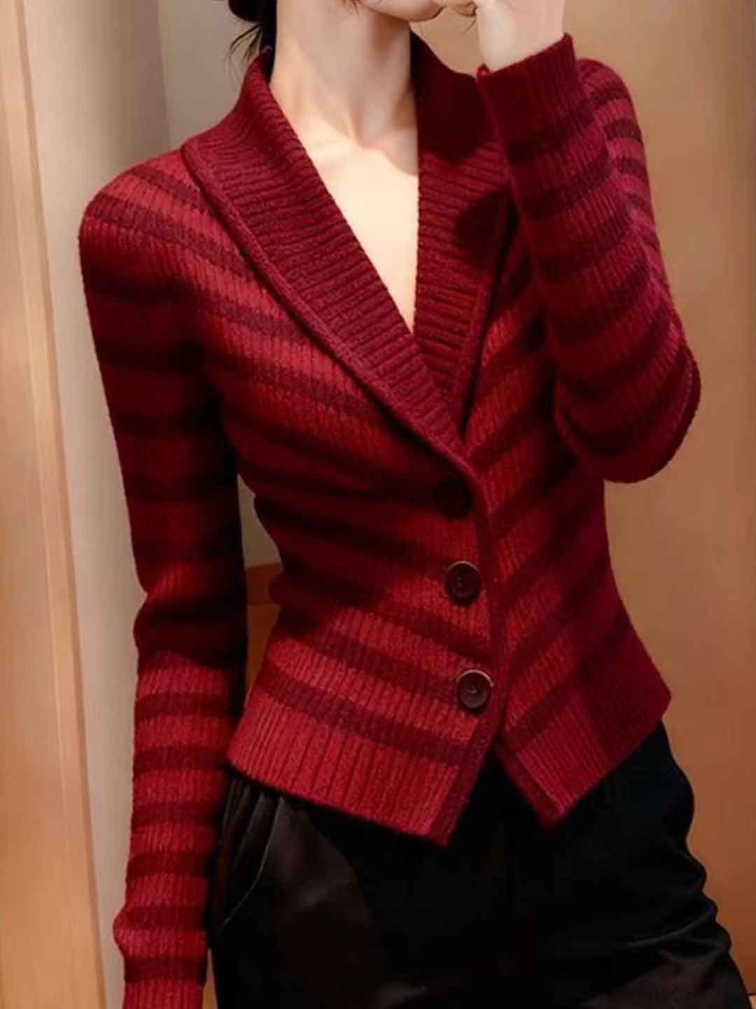 Mia Cinched Waist V-neck Striped Knitted Sweater