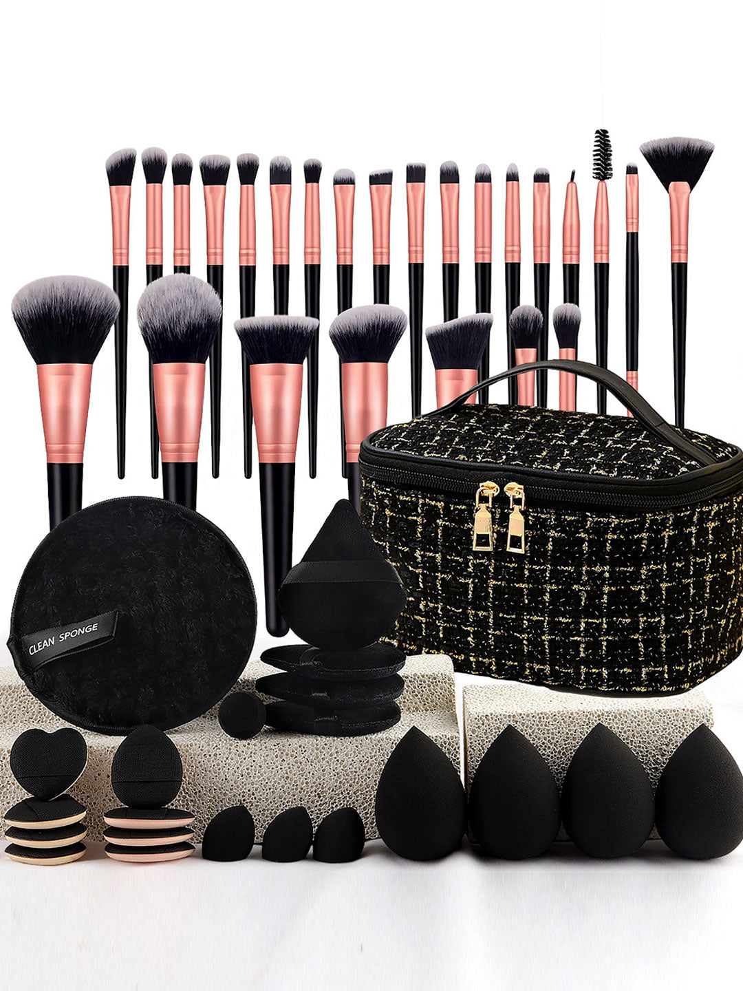 47Pcs Tweed Style Makeup Bag And Brushes Set Professional Tools
