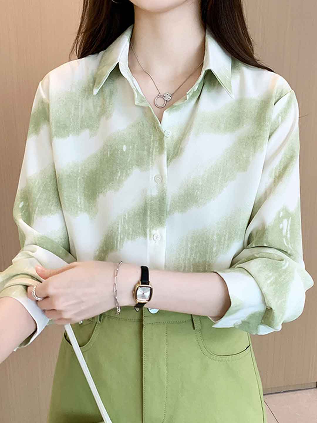 Mya Loose Polo Collar Printed Shirt