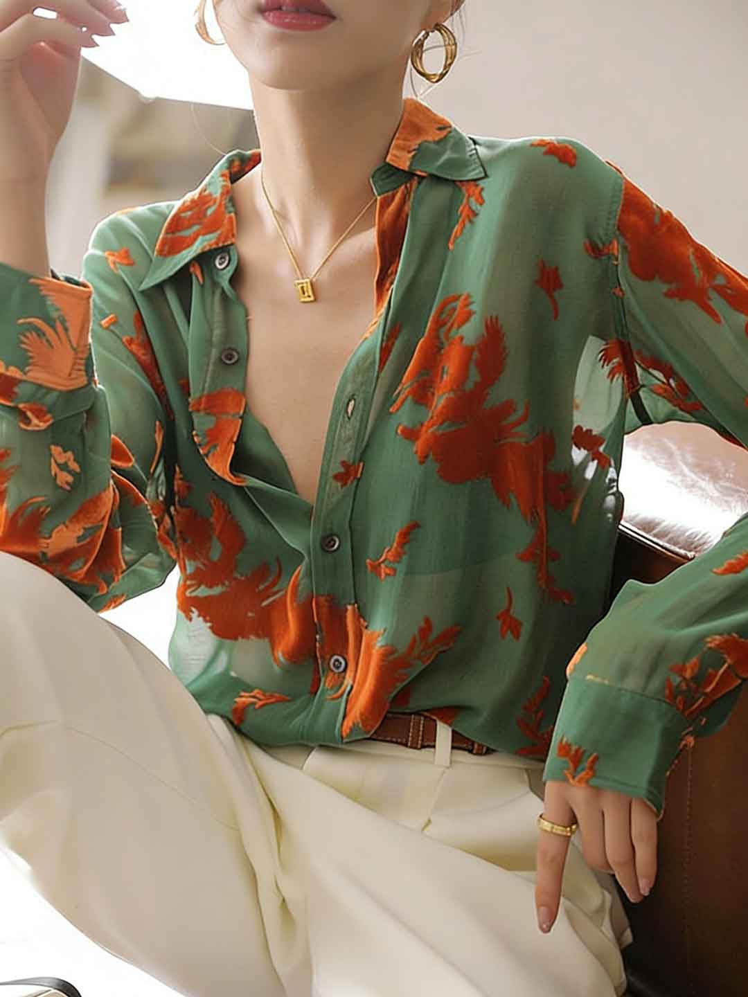 Camila Classic Lapel Jacquard Chiffon Shirt