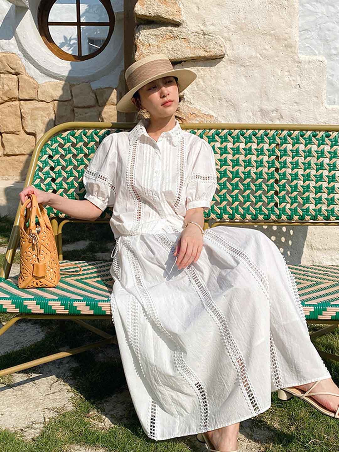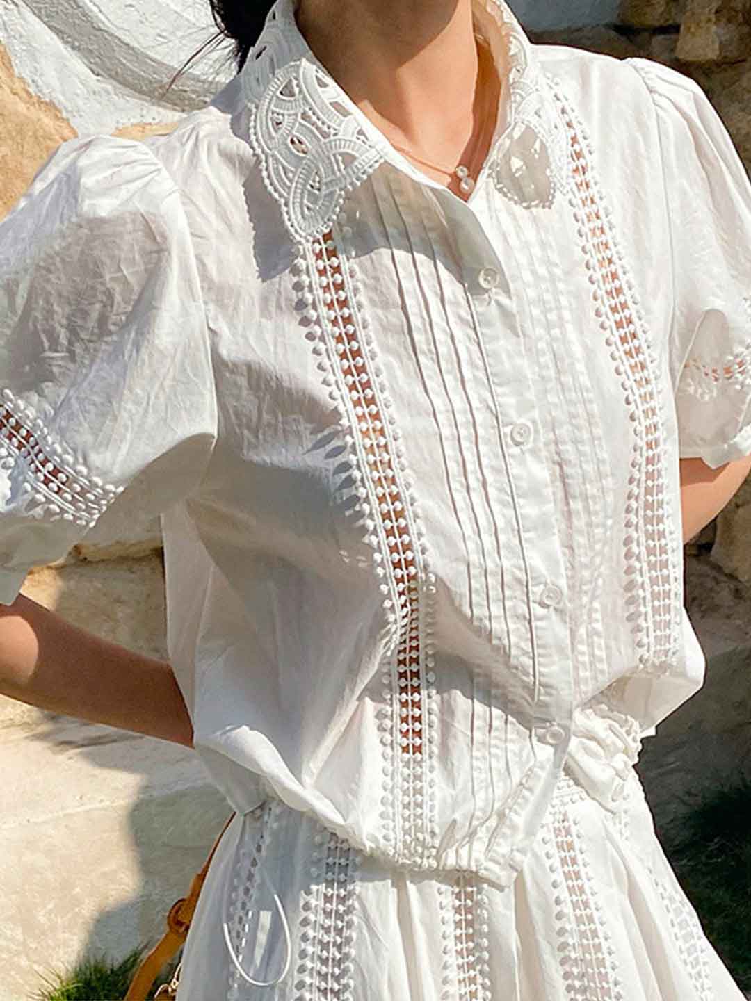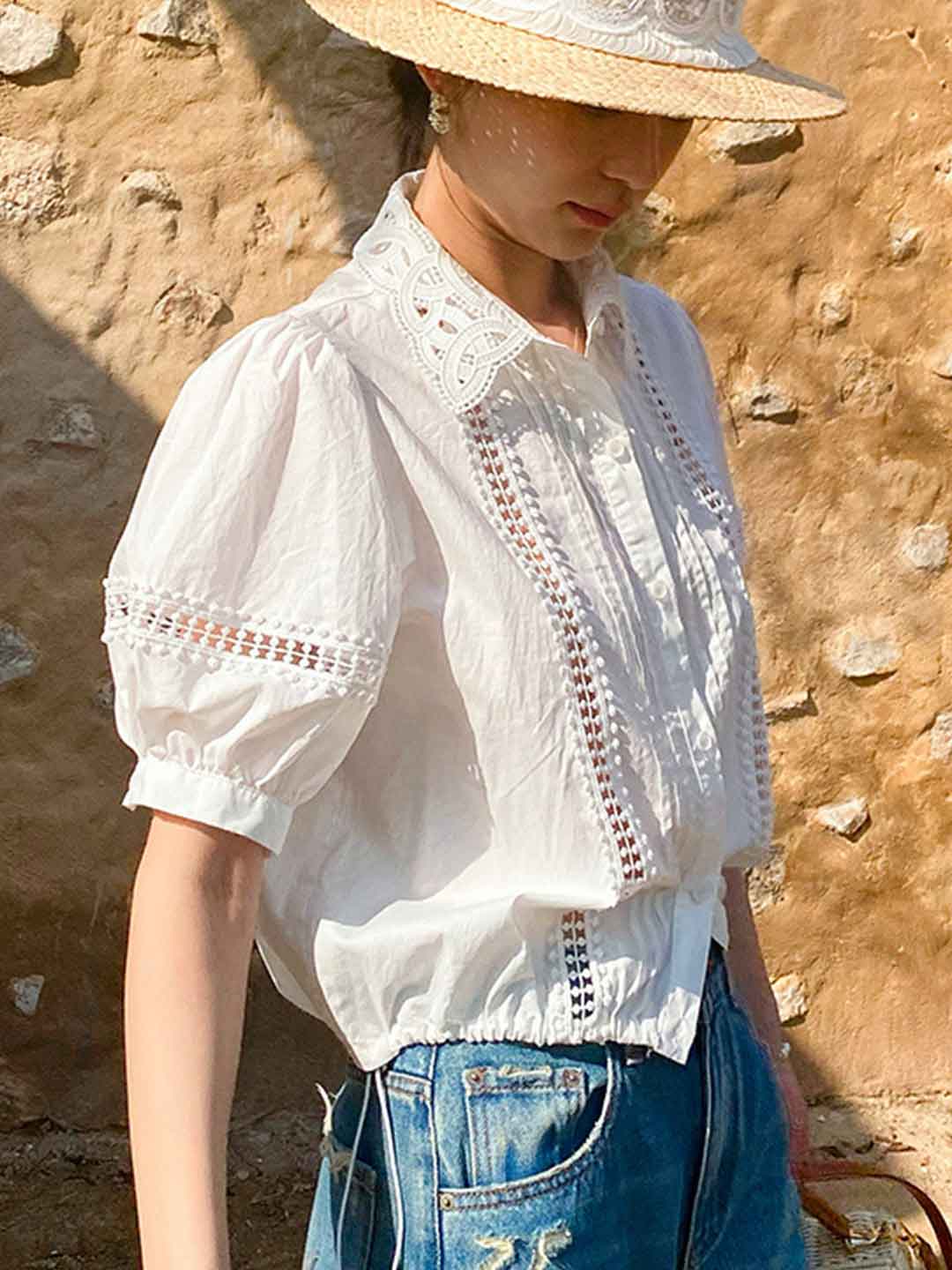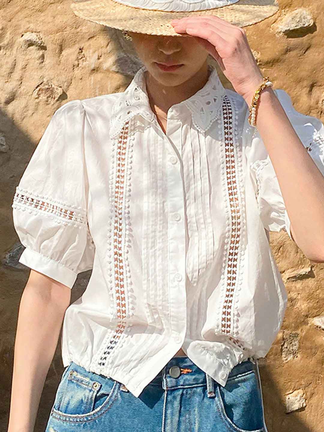 Destiny Daily Puff Sleeve Hollowed Striped Shirt