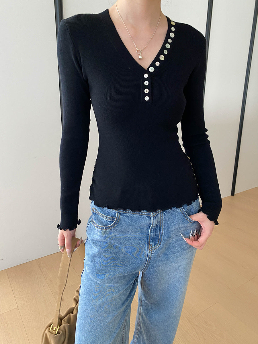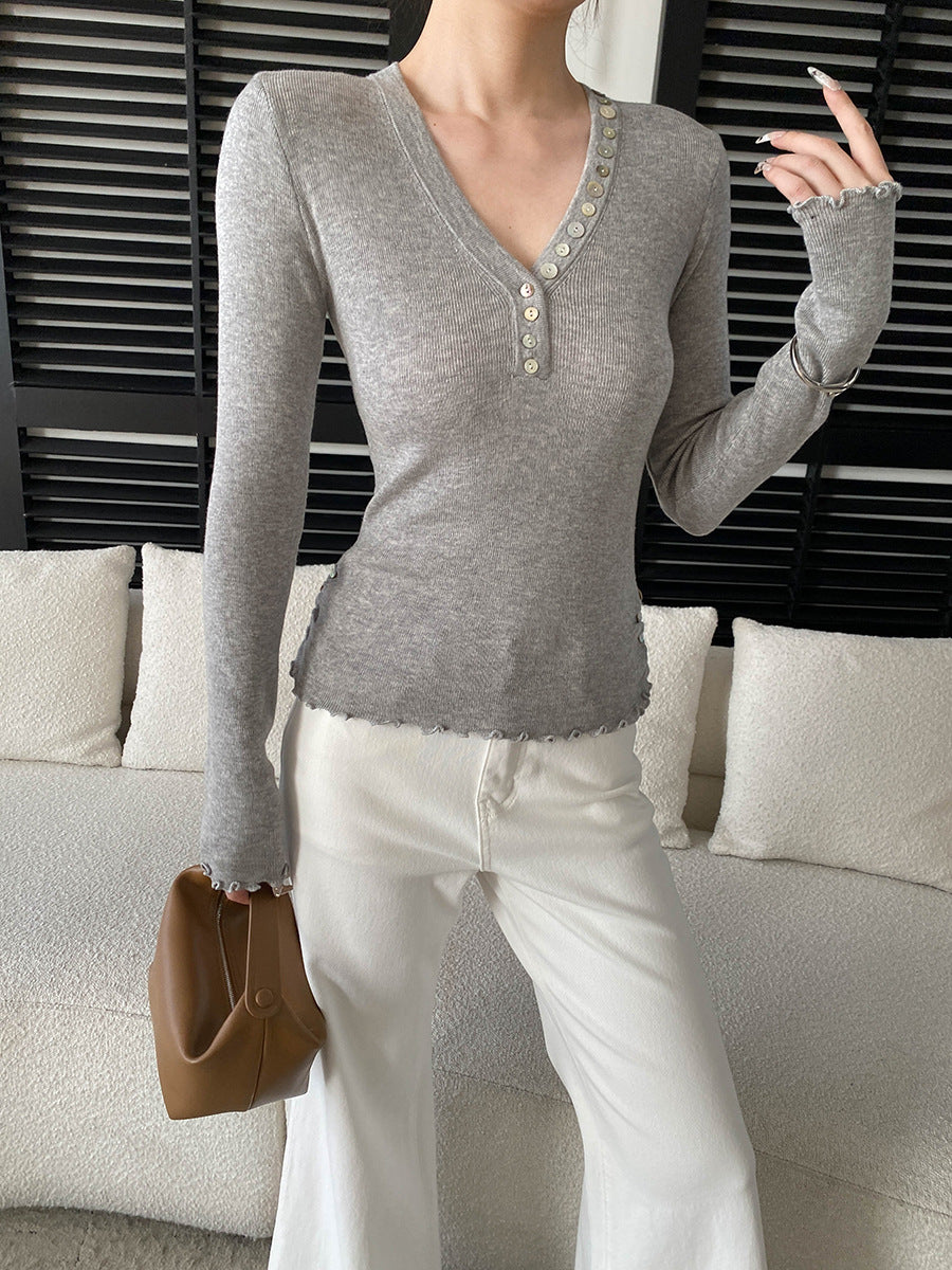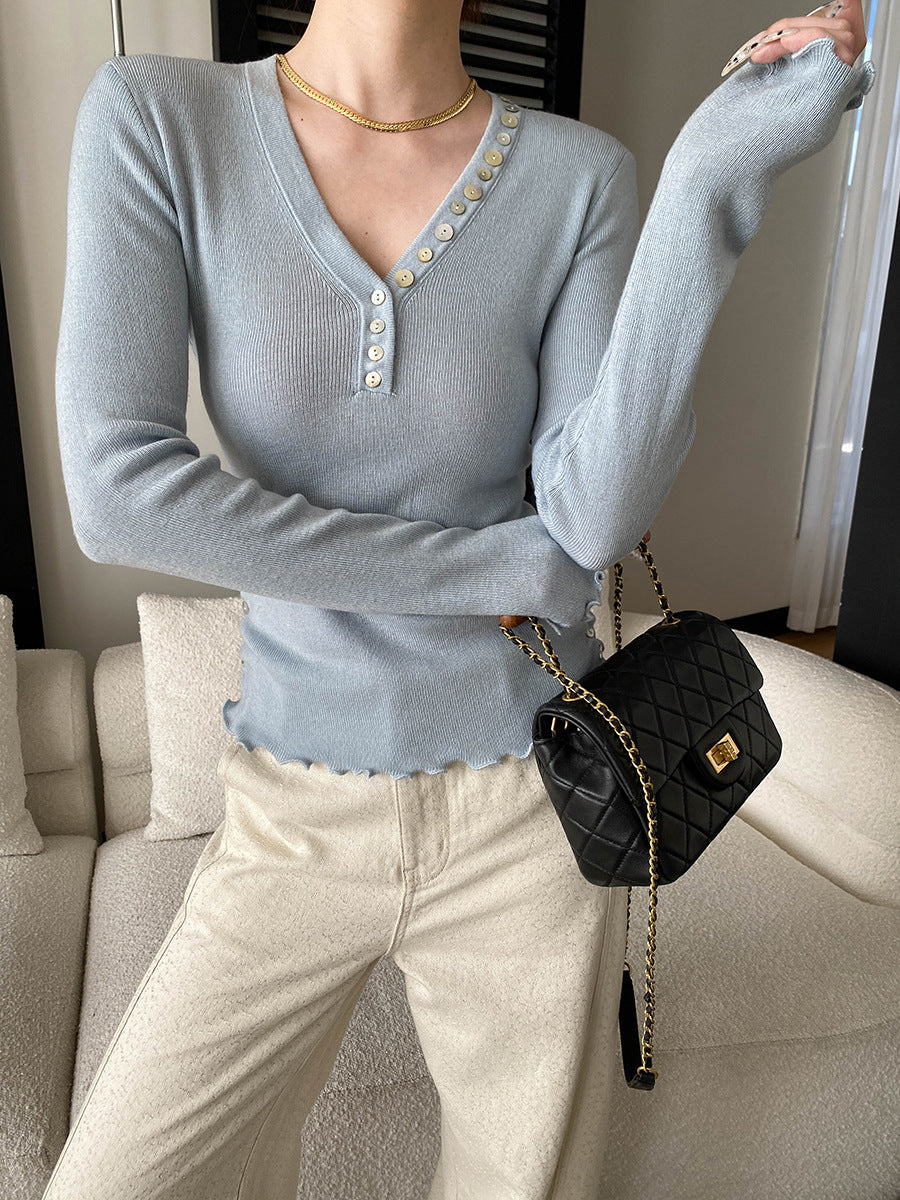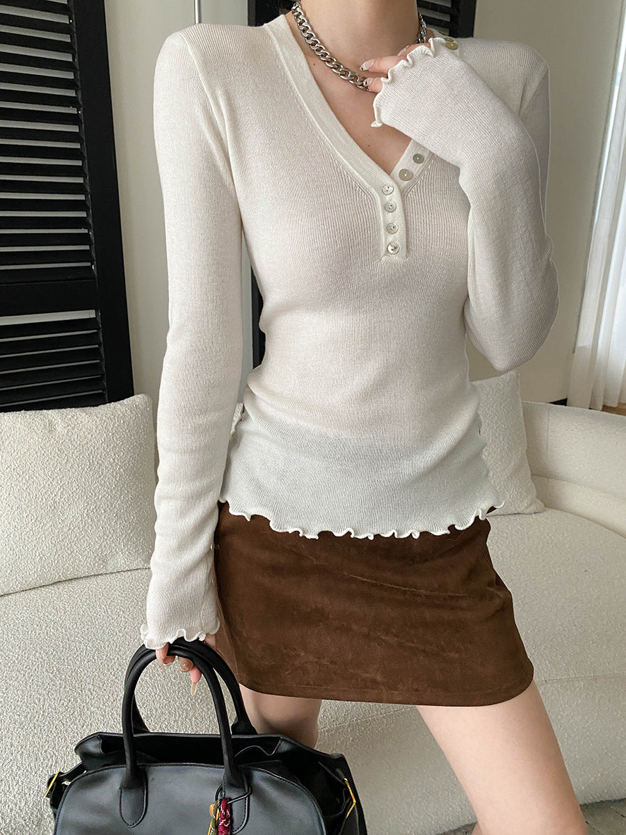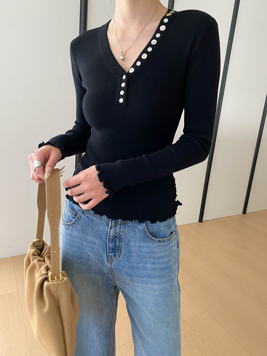 Molly Slim V-Neck Auricular Knitted Top