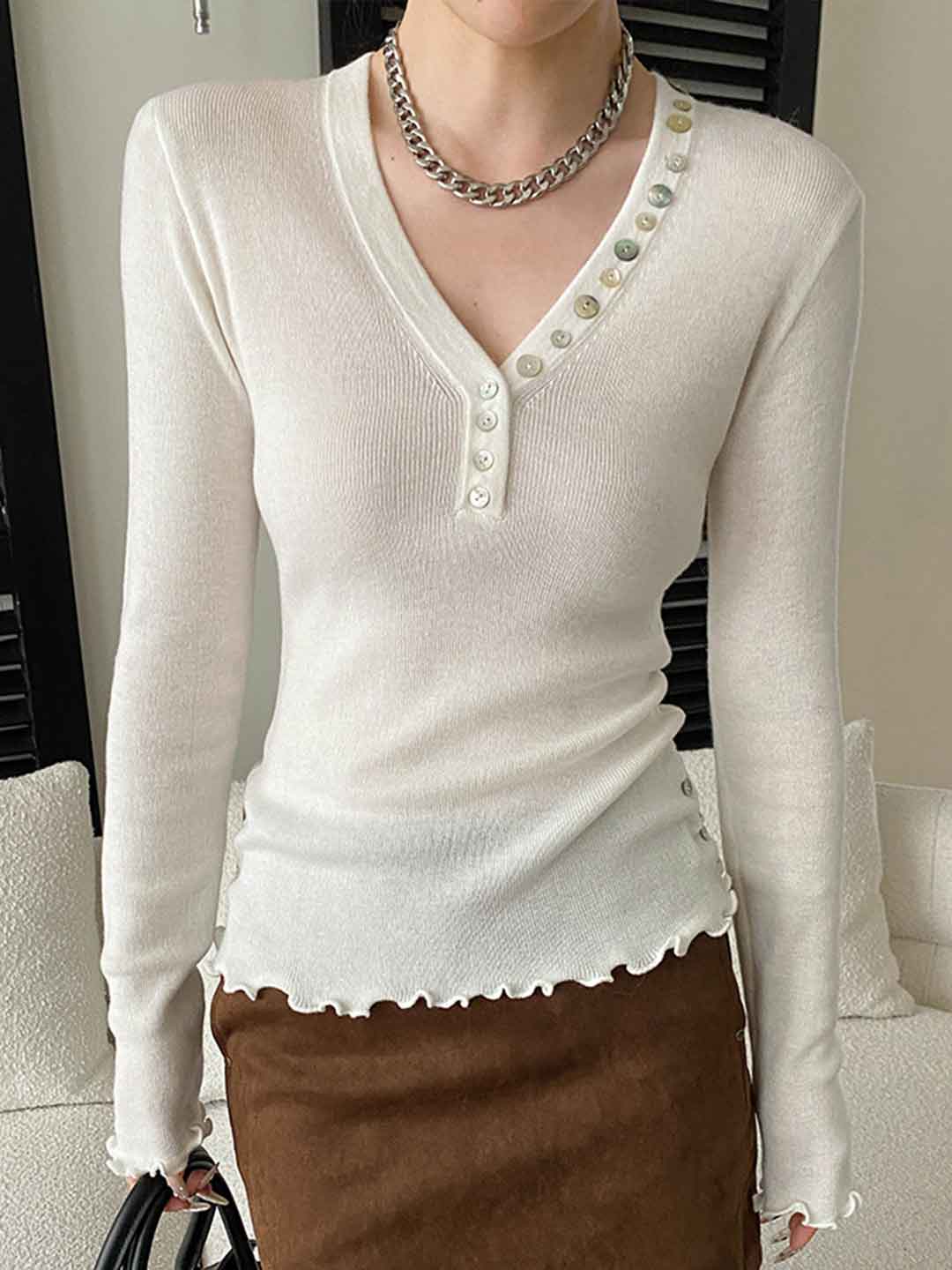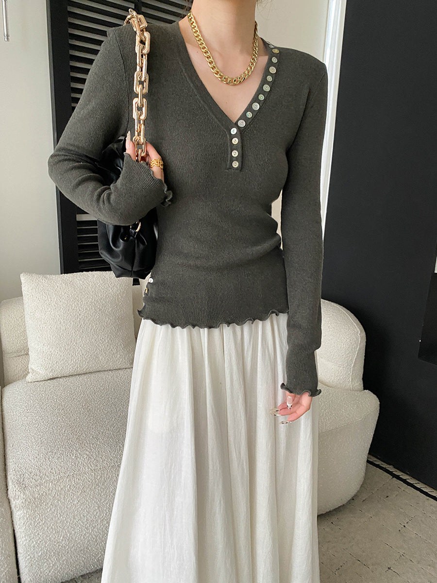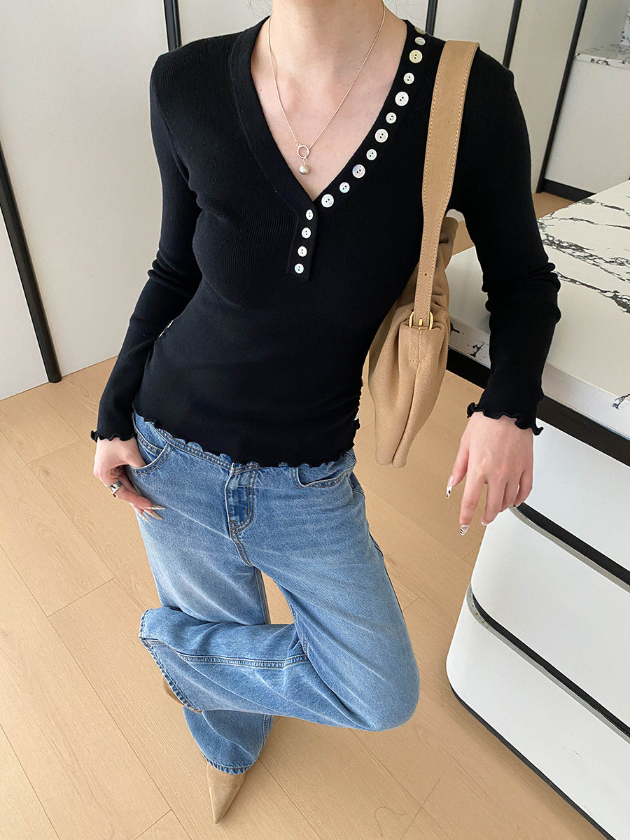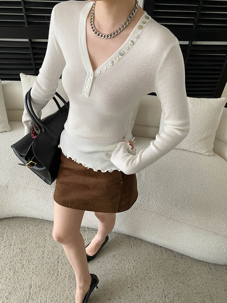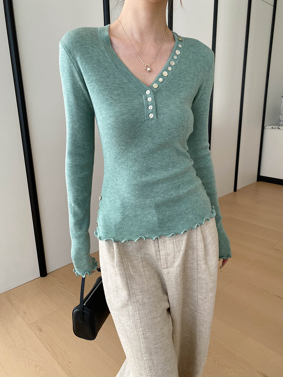 Molly Slim V-Neck Auricular Knitted Top