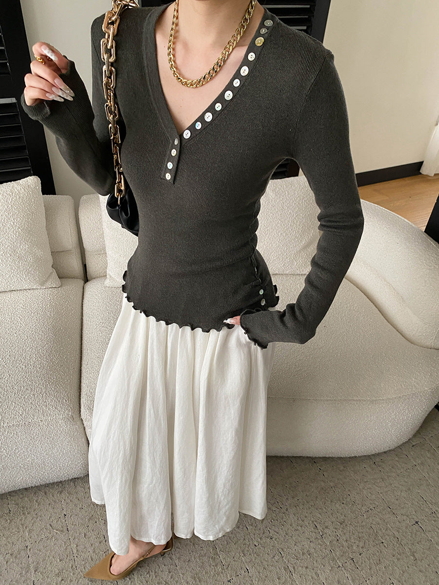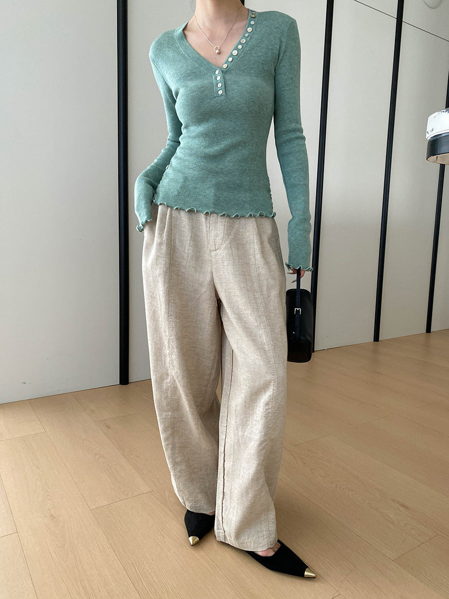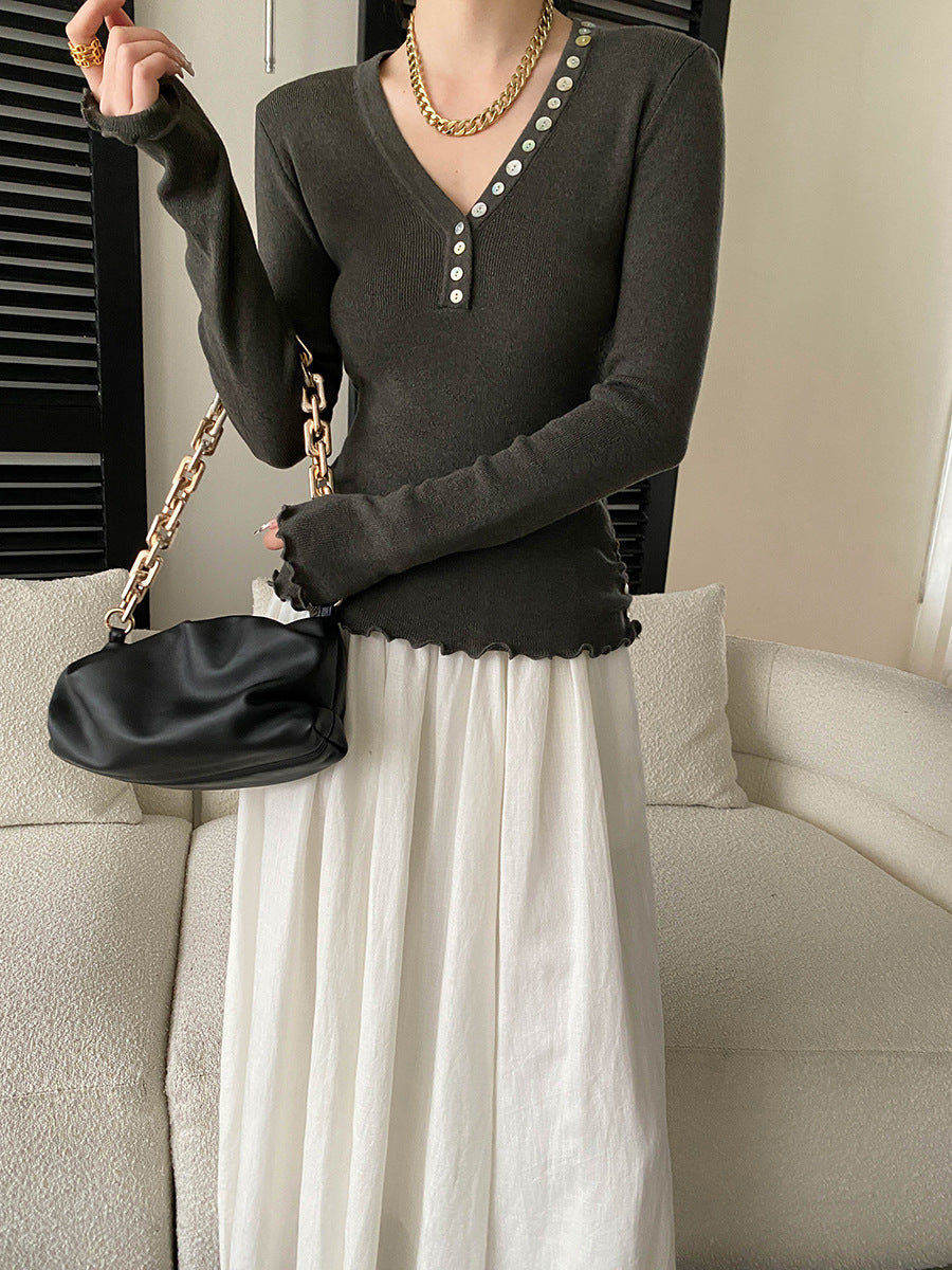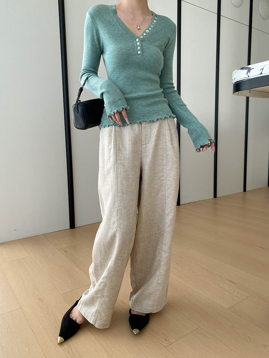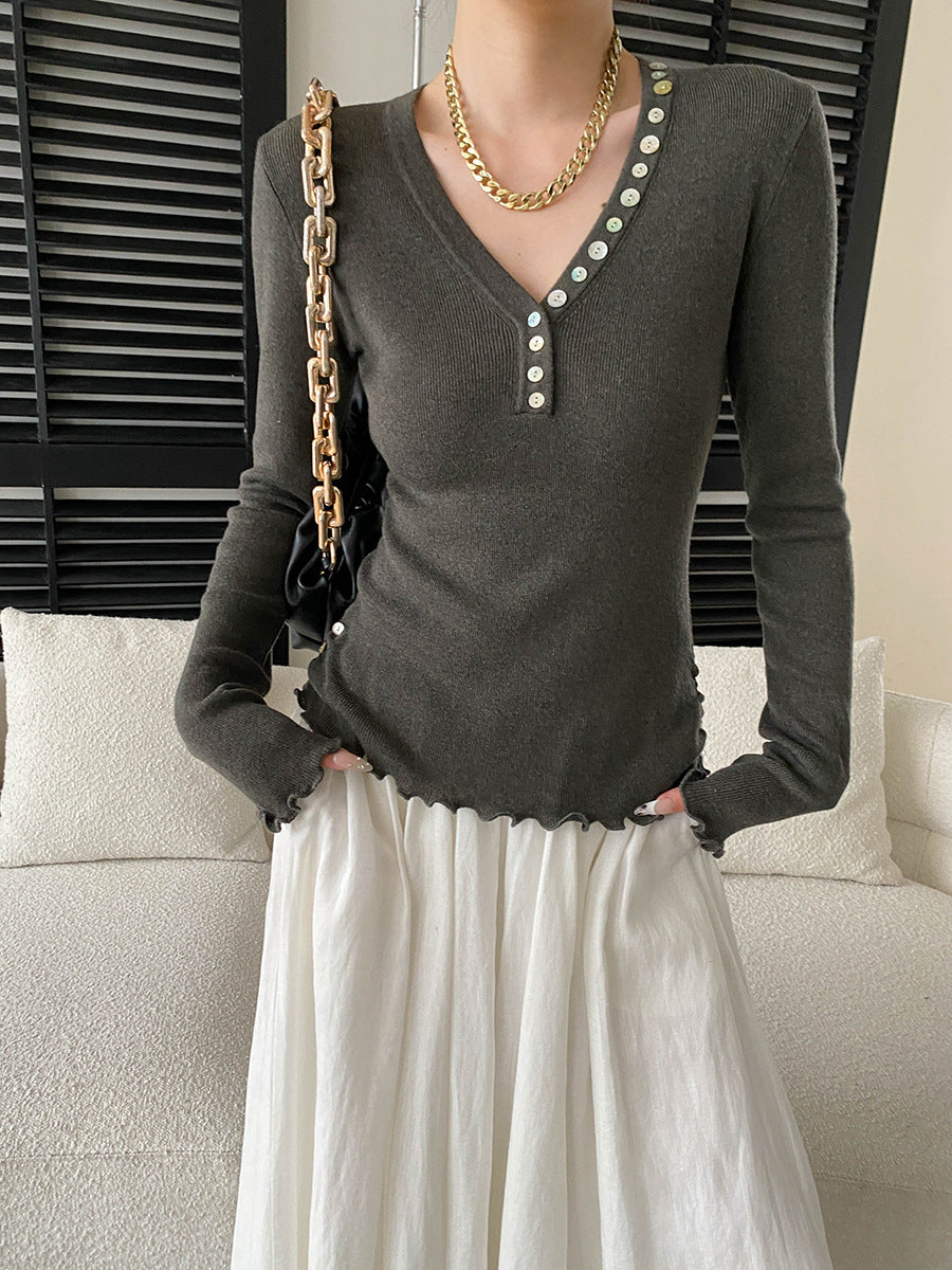 Molly Slim V-Neck Auricular Knitted Top