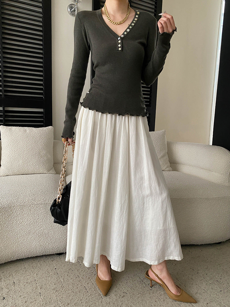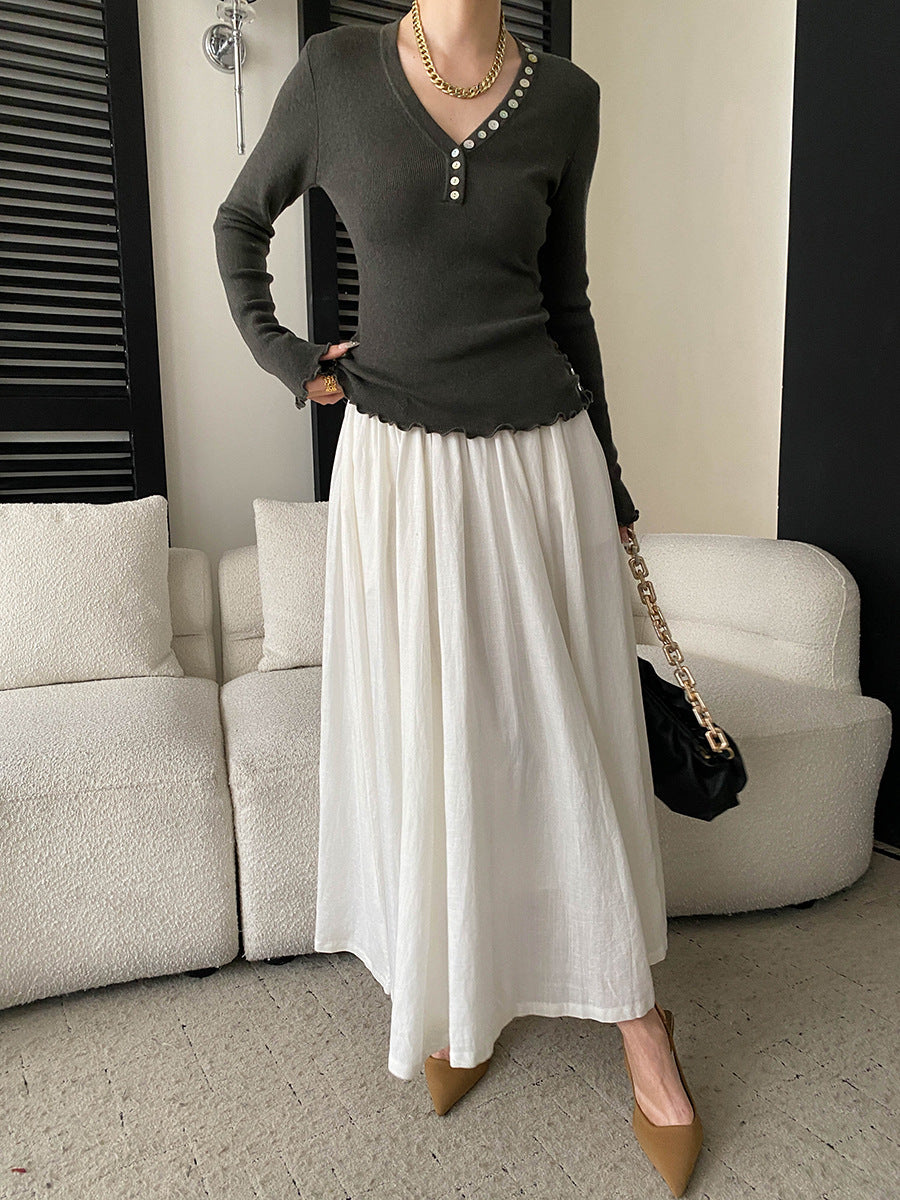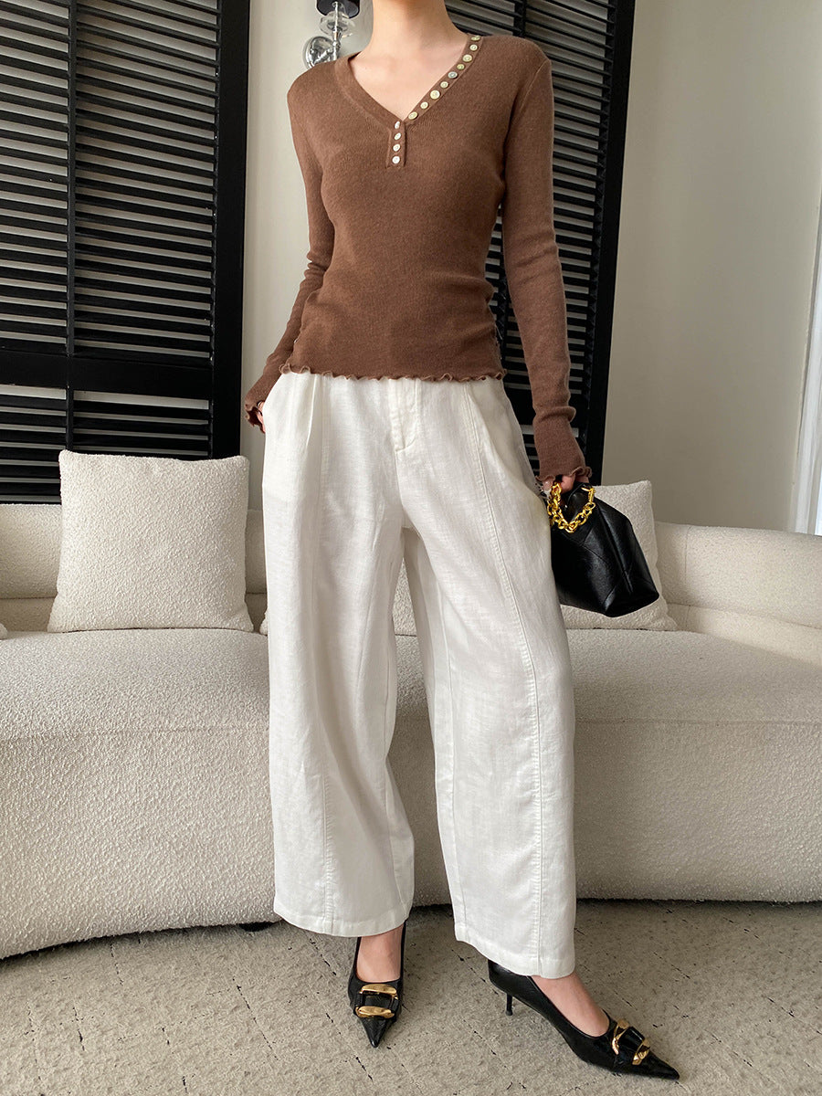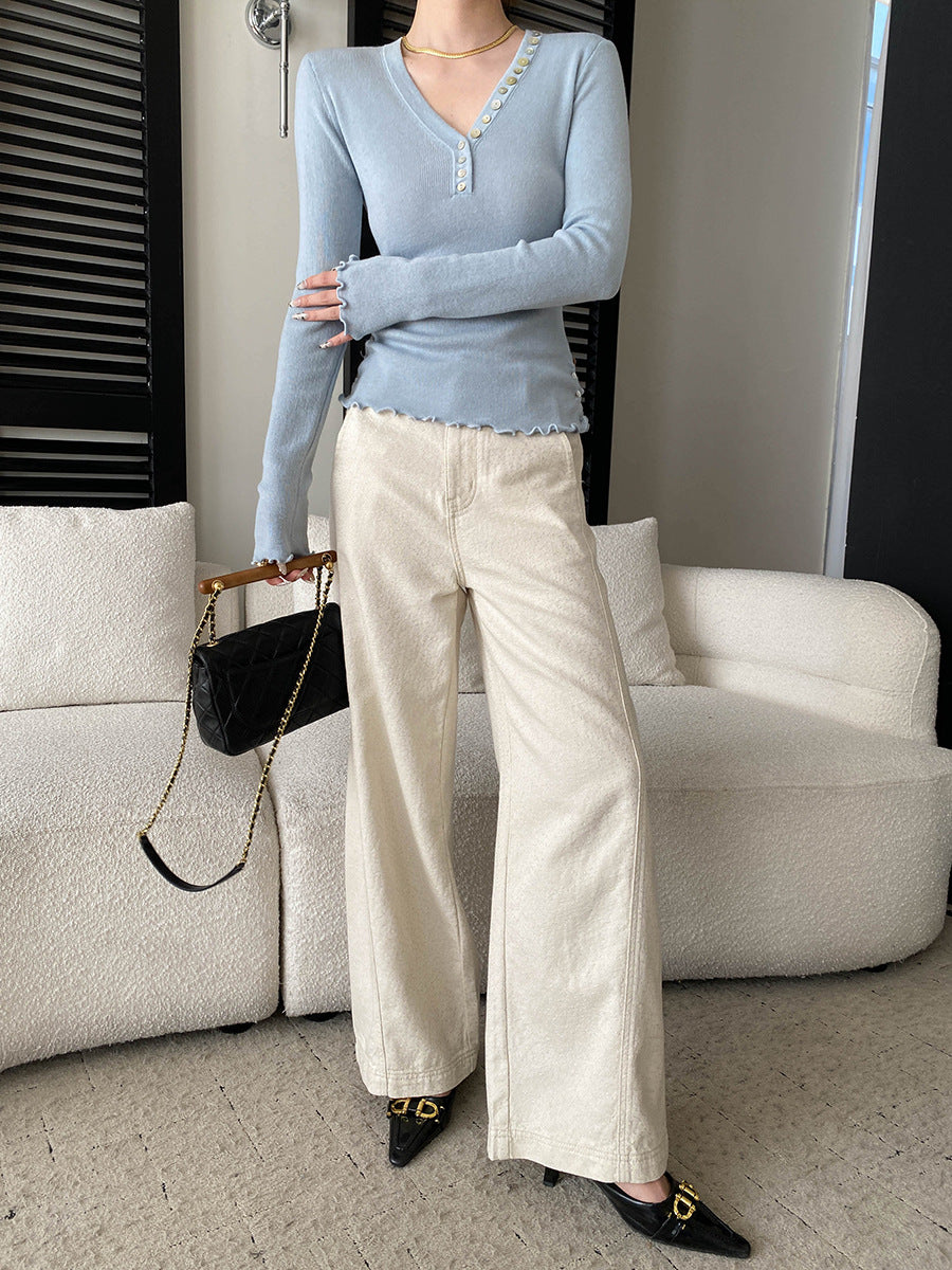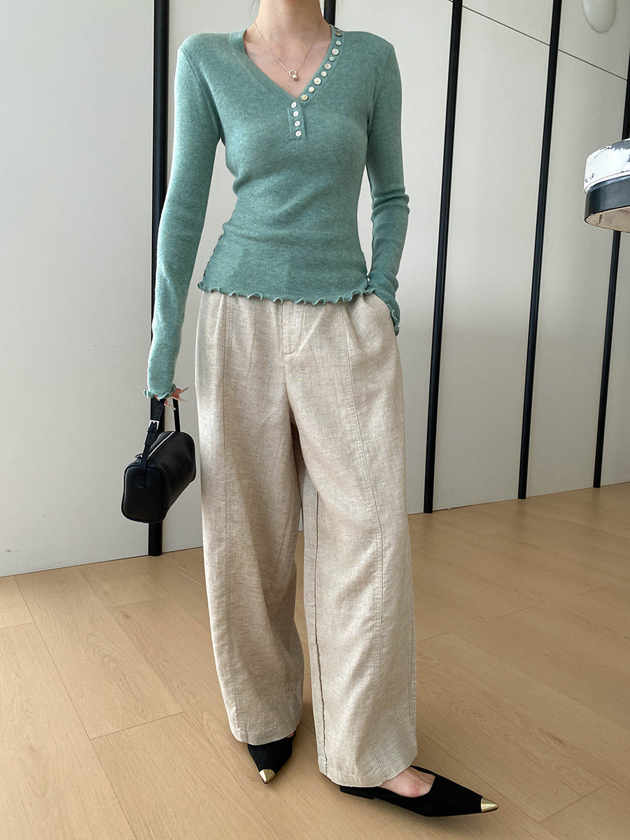 Molly Slim V-Neck Auricular Knitted Top