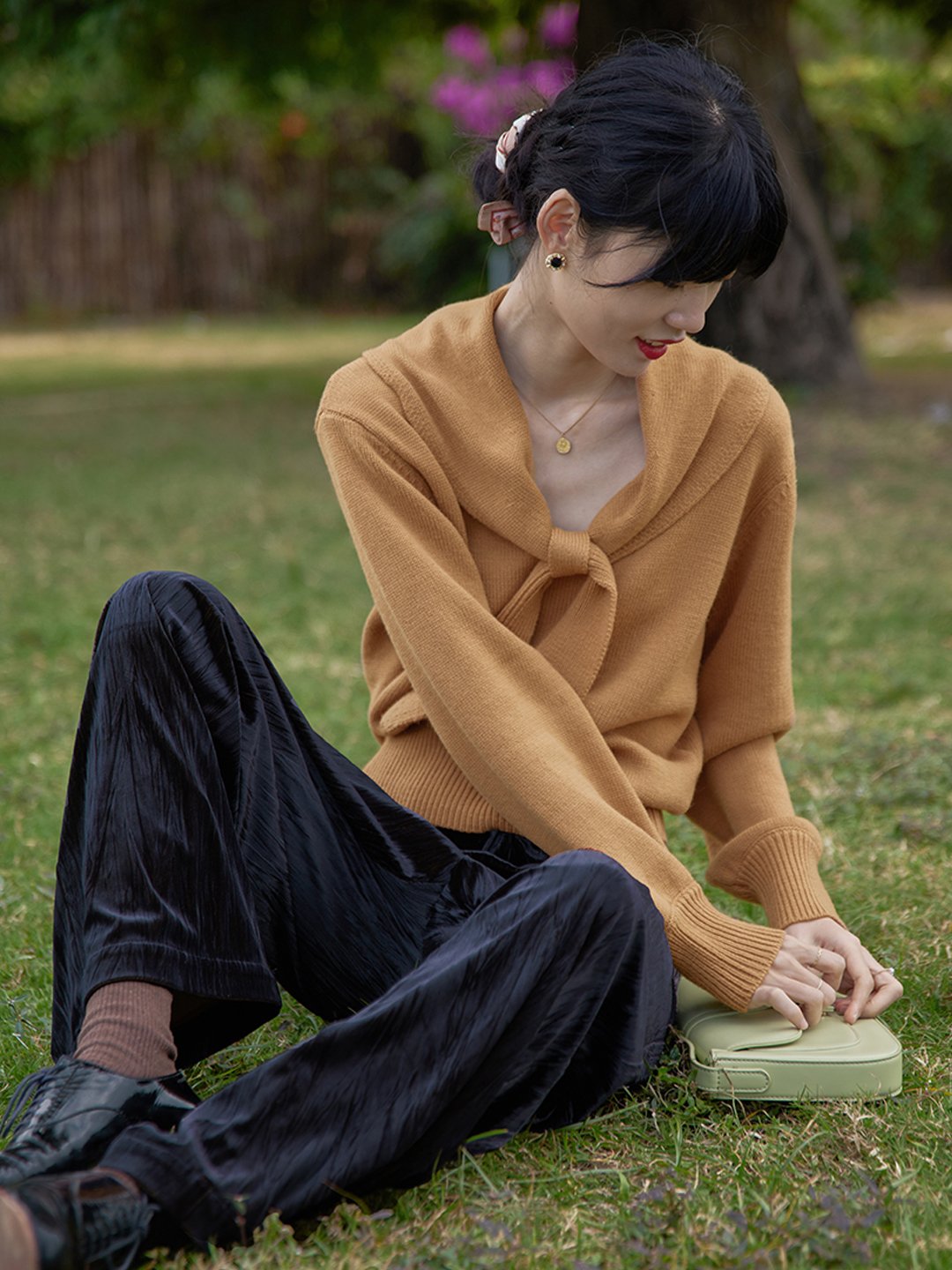 Kelly Knit V-Neck Vintage Sweater-Blue