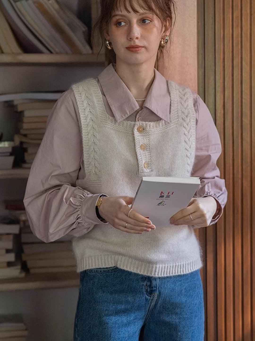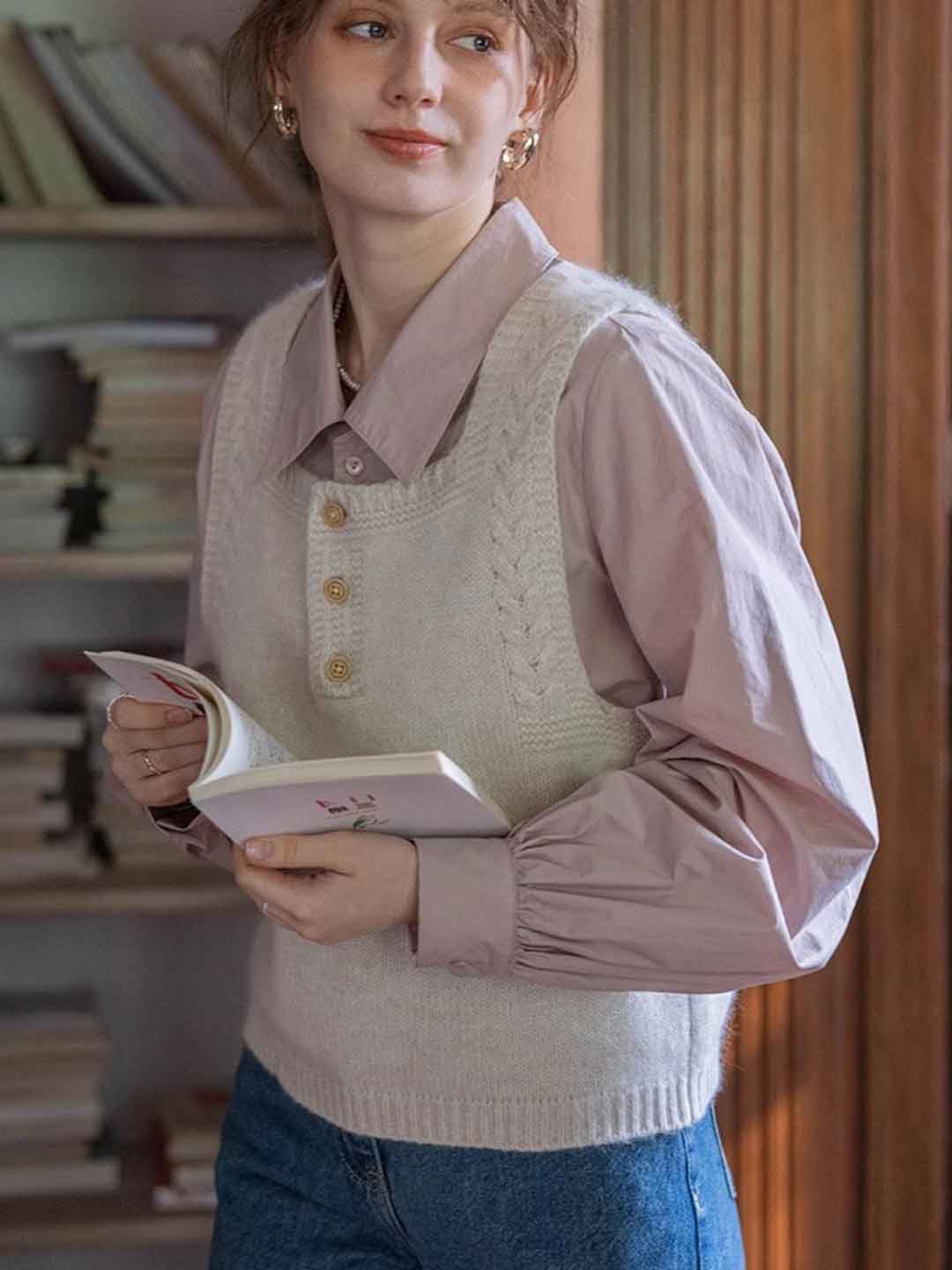 Hannah Retro Square Neck Cable Knitted Vest