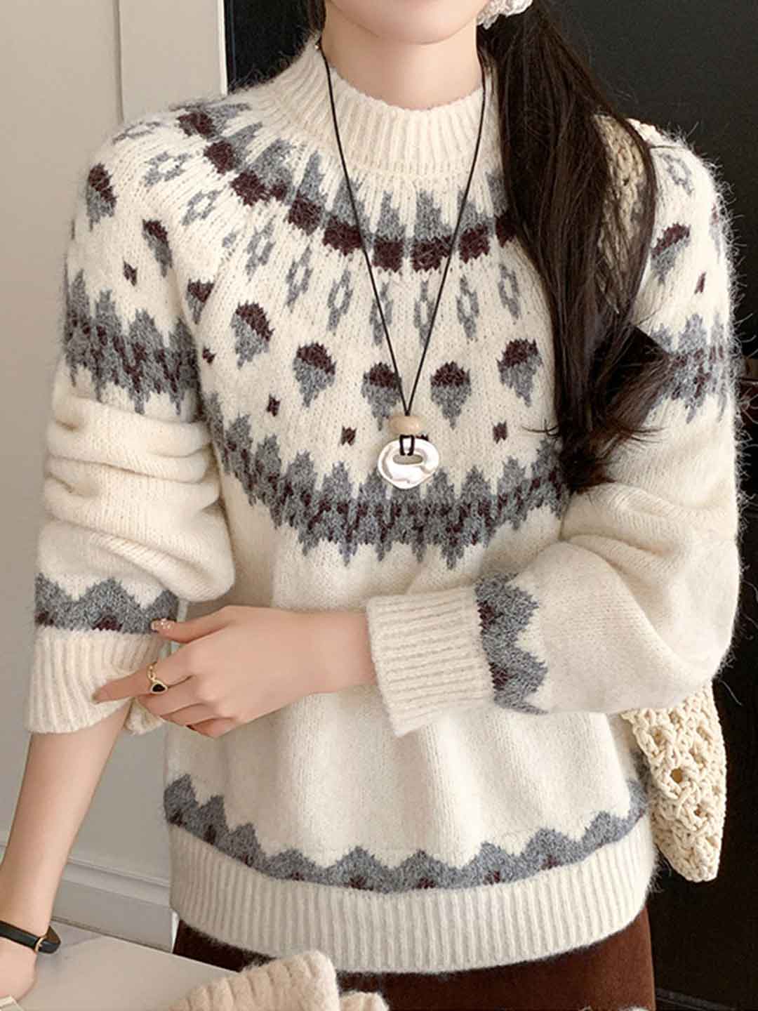 Taylor Vacation Crew Neck Jacquard Knitted Pullover Sweater