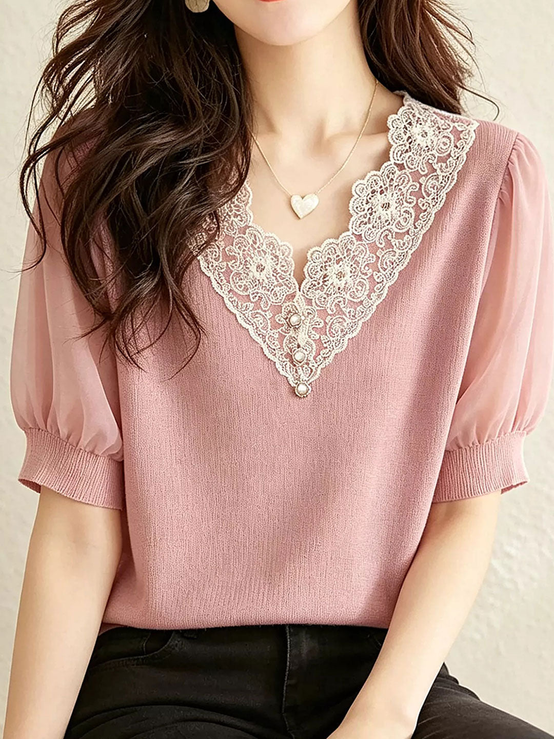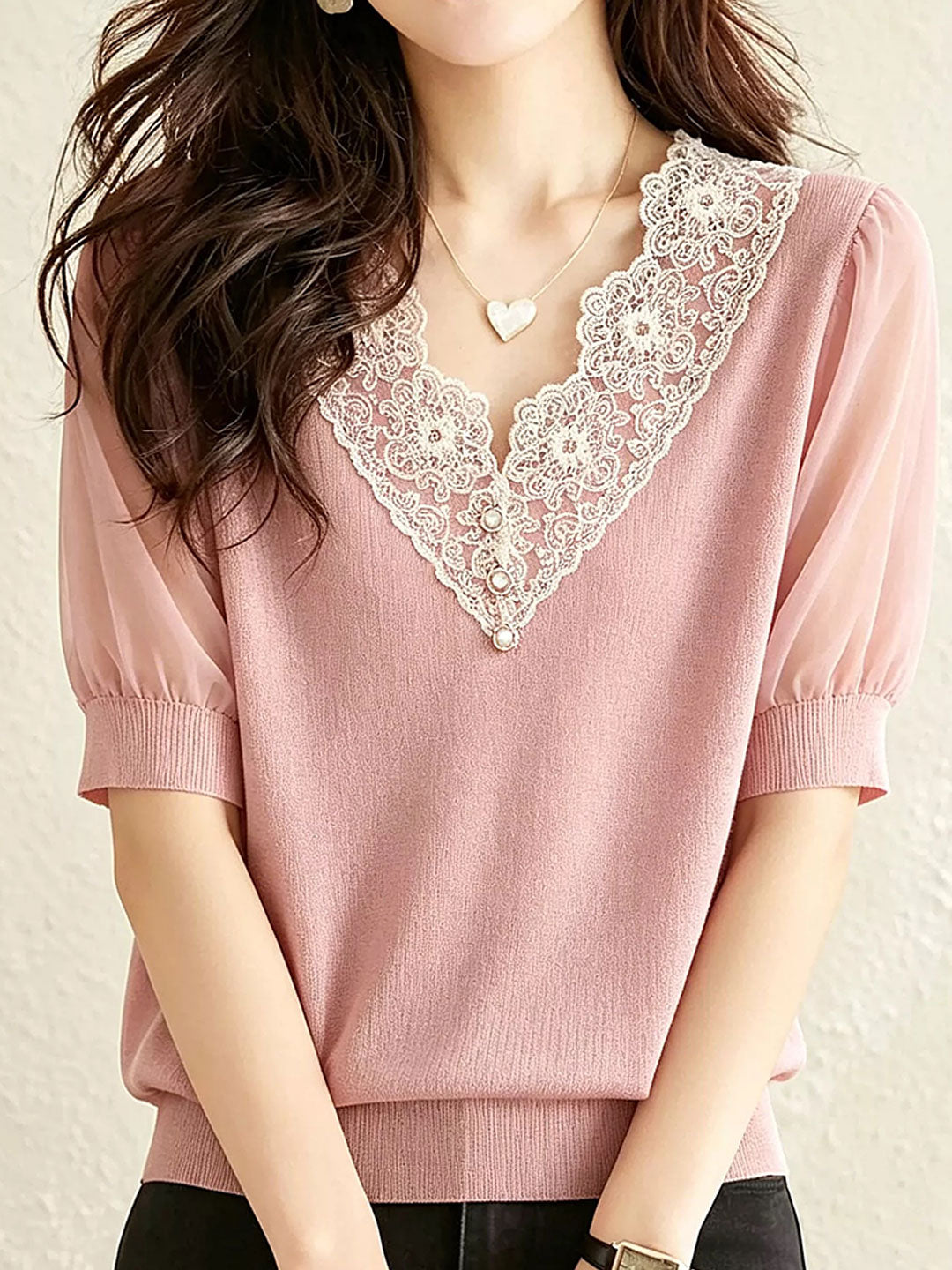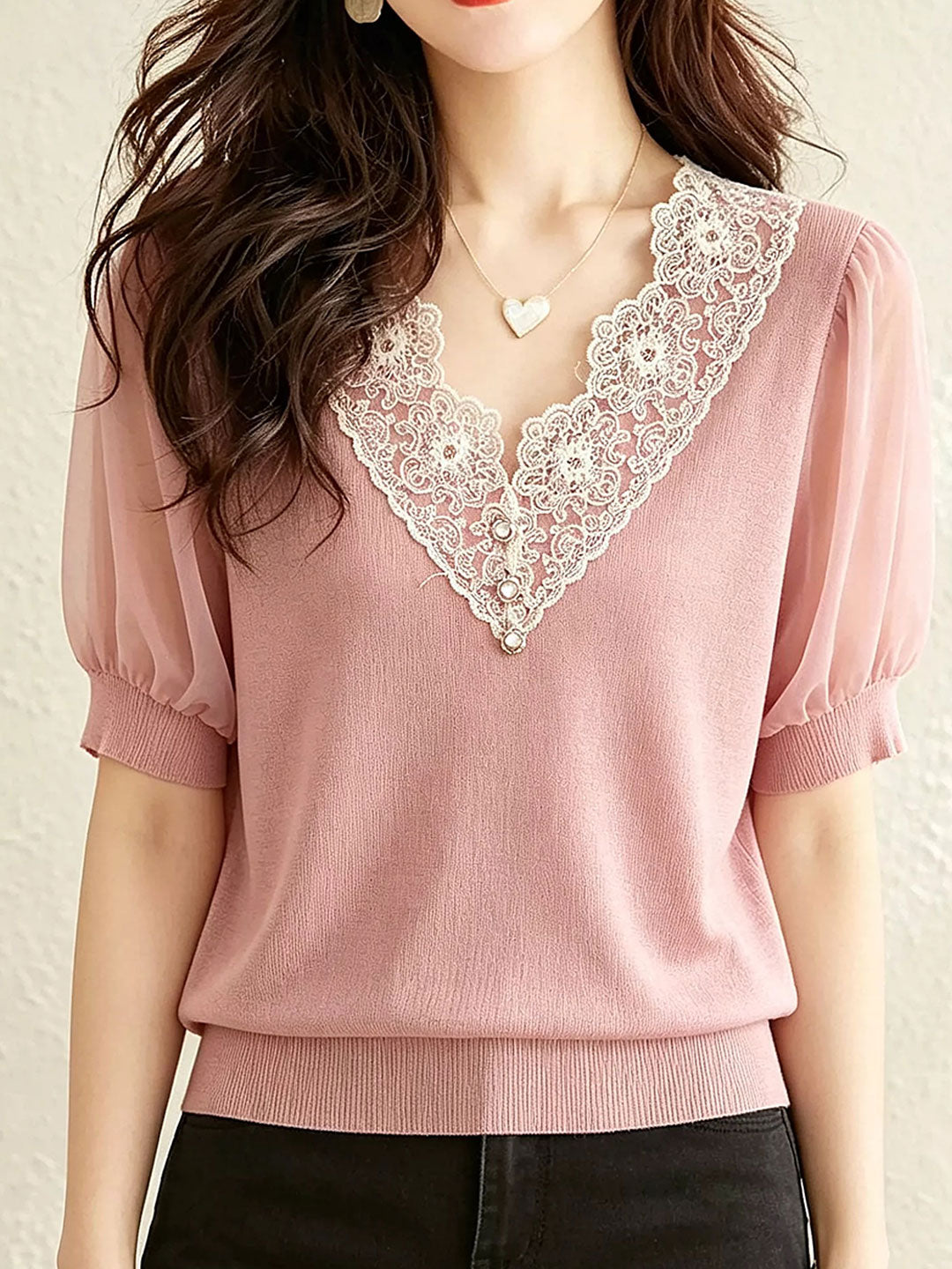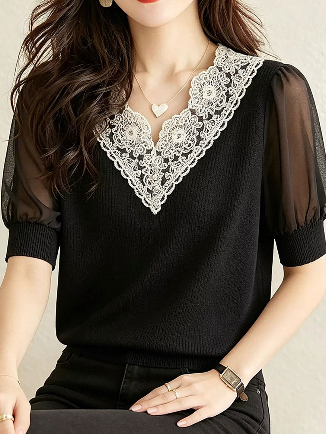 Zoey Casual V-Neck Lace Trimmed Top