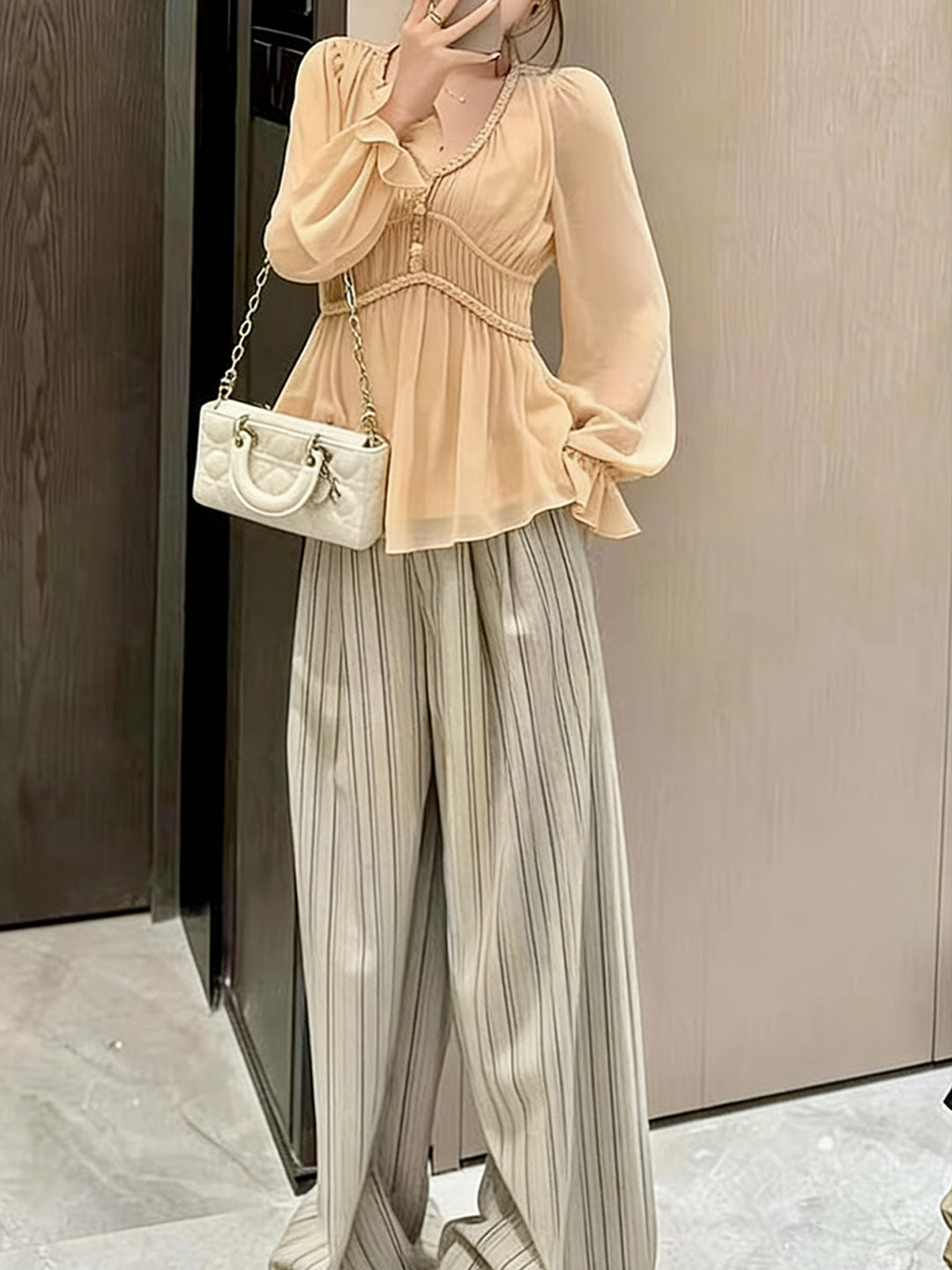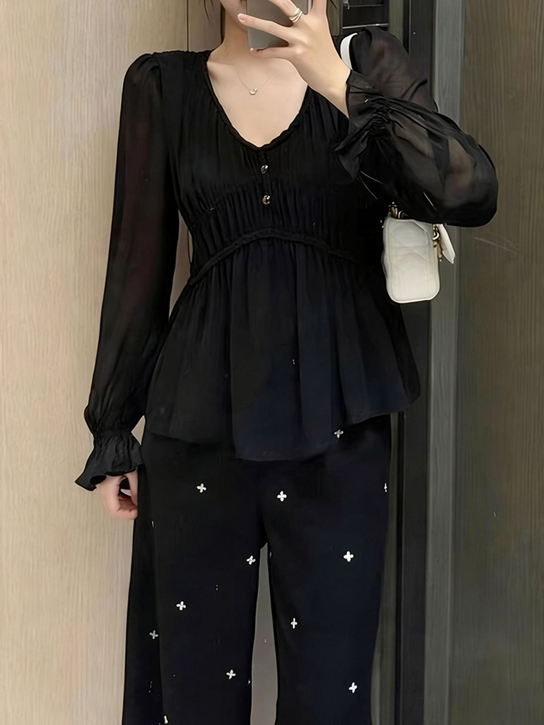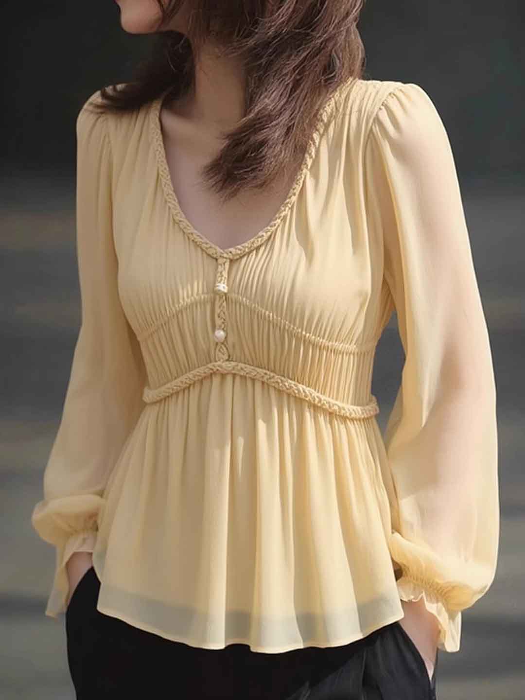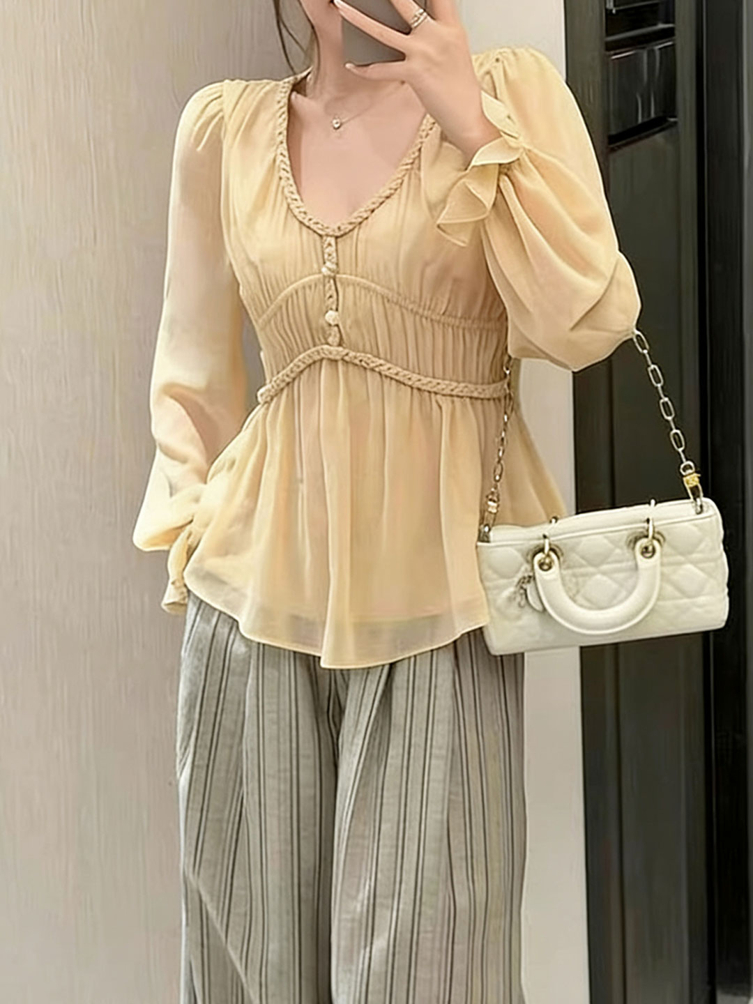 Sophia Daily V-Neck Puff Sleeve Chiffon Top