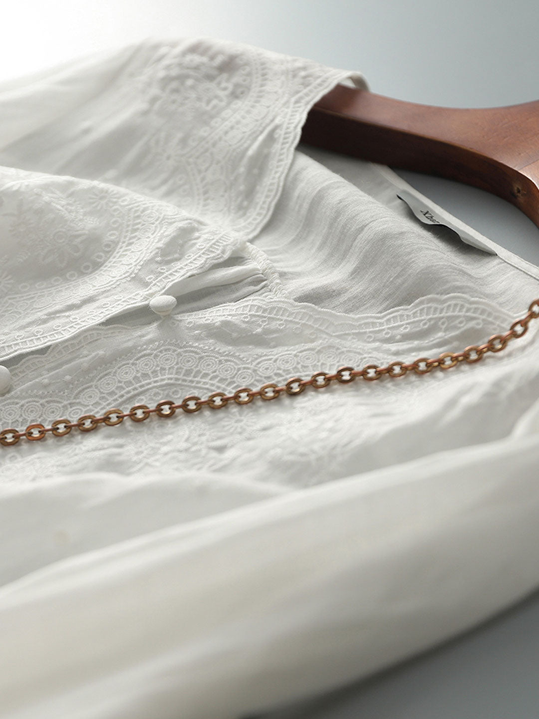 Abigail Vacation V-Neck Solid Color Embroidered Top