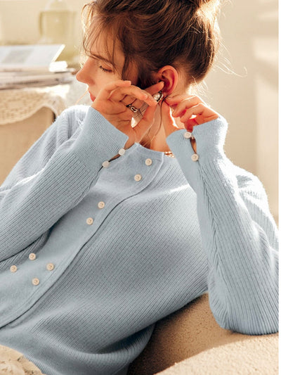 Alena French Style  Double-breasted Knitted Cardigan-Beige