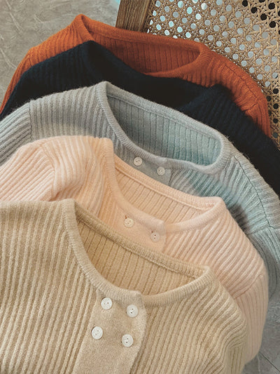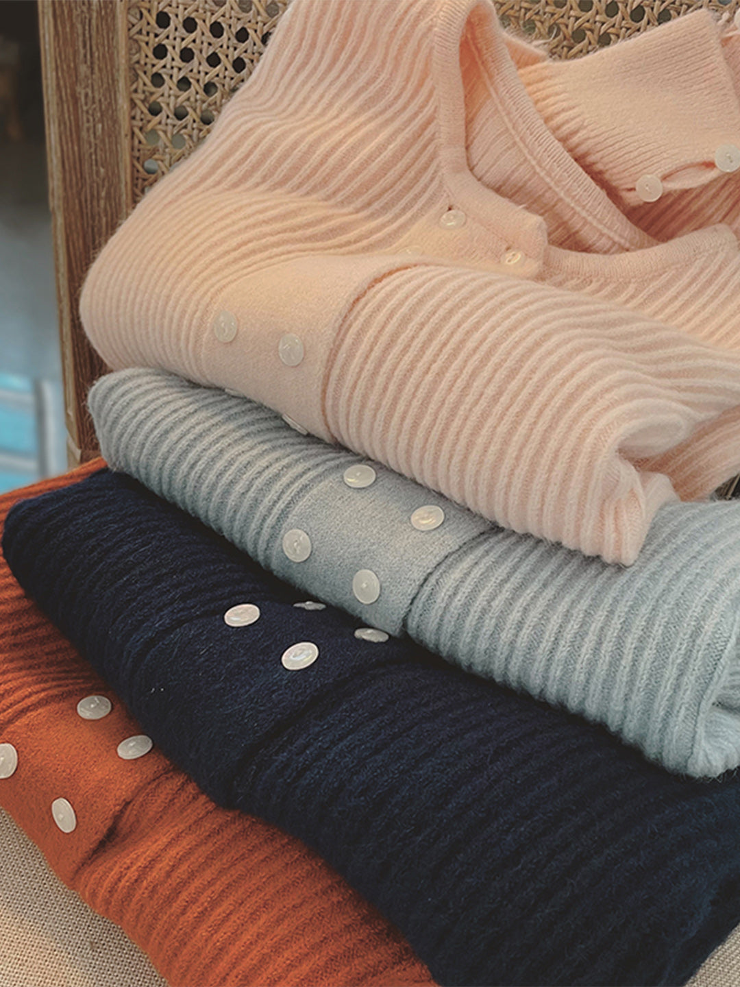 Alena French Style Double-breasted Knitted Cardigan-Beige
