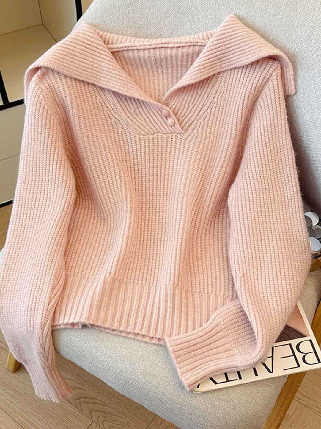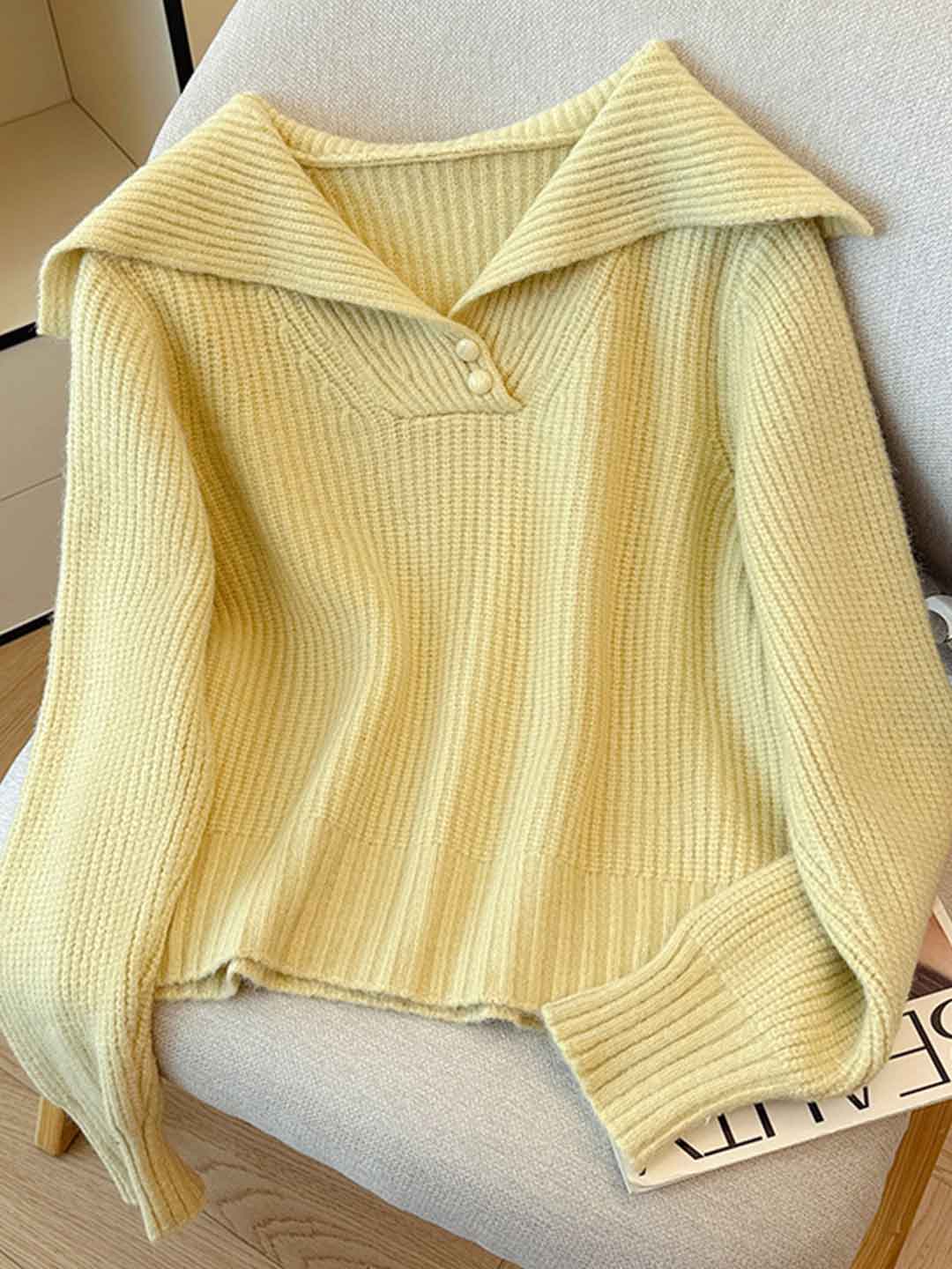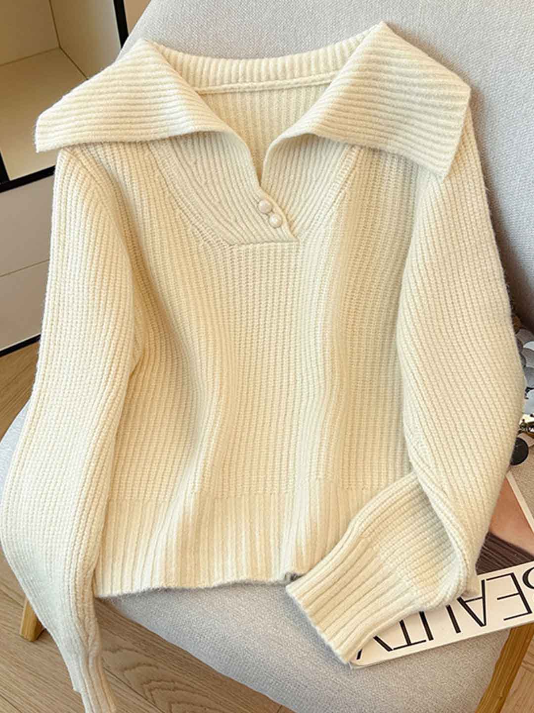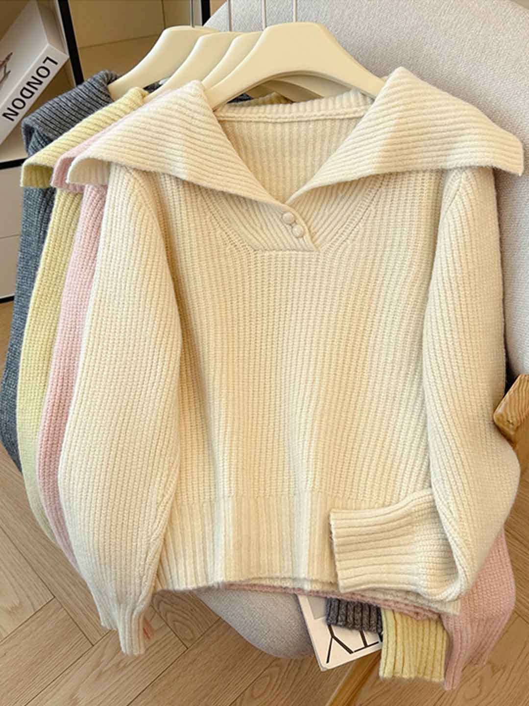 Chloe Vintage Lapel Solid Color Knitted Sweater