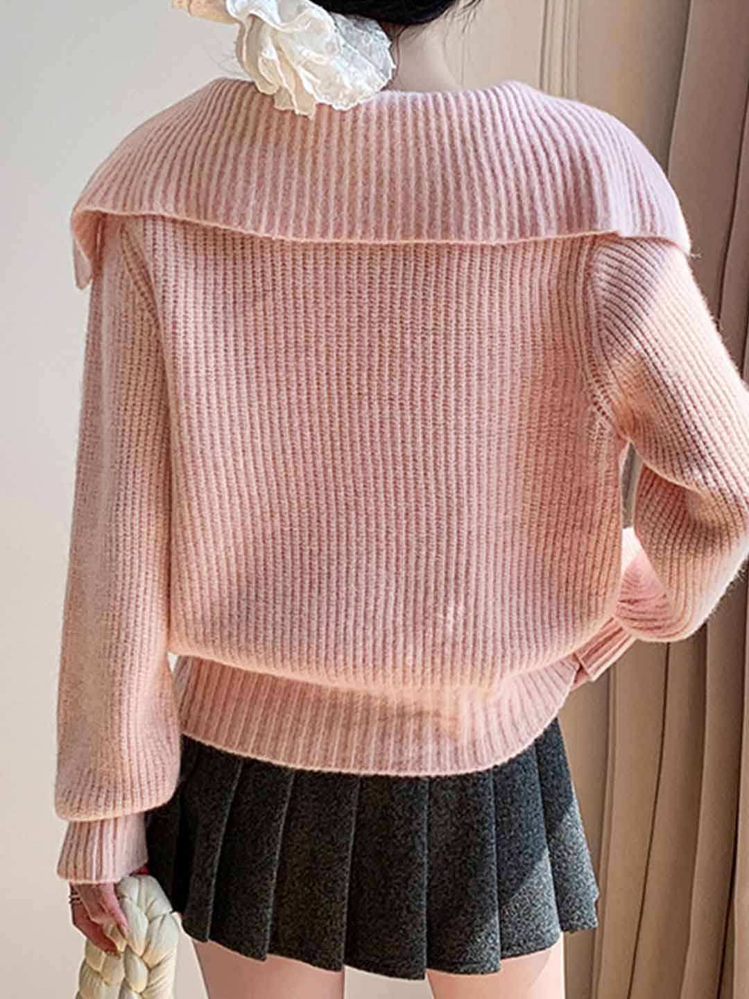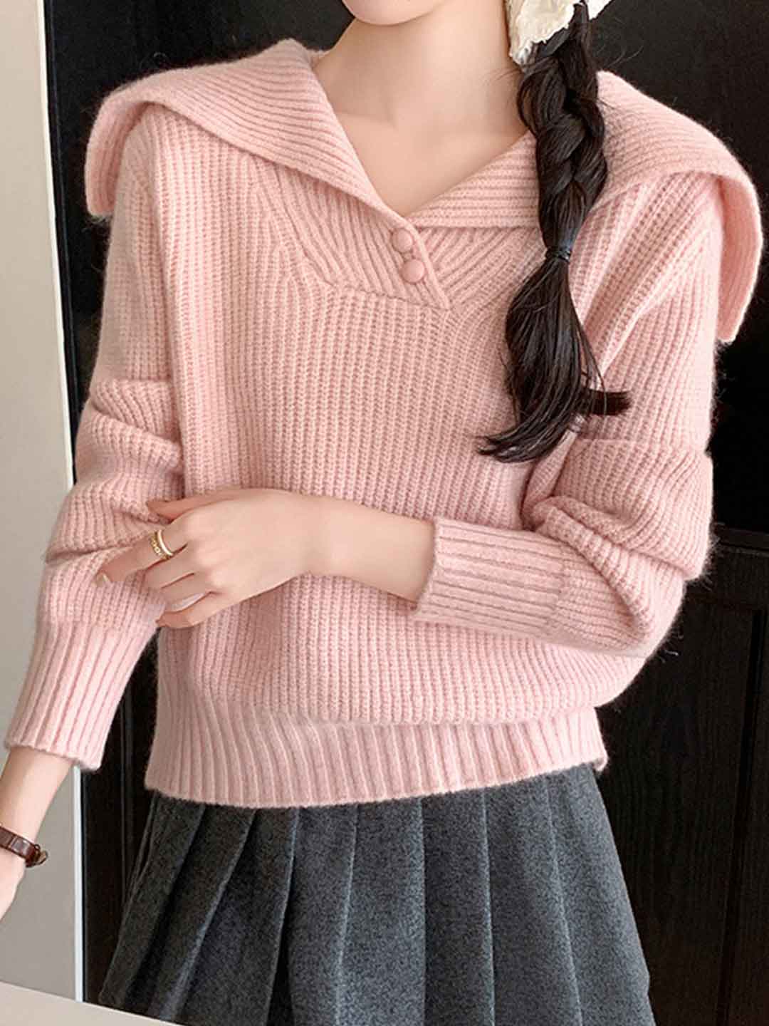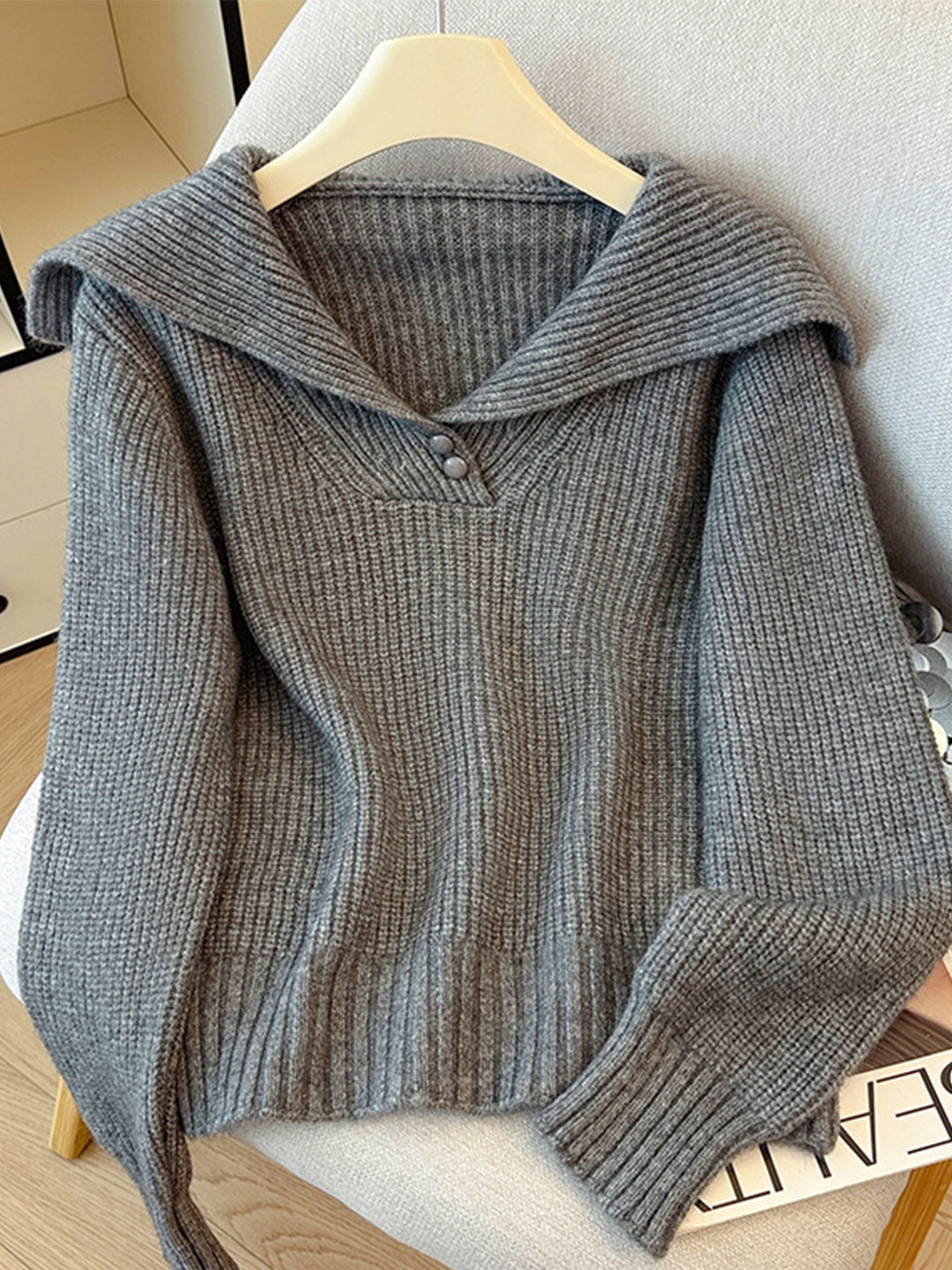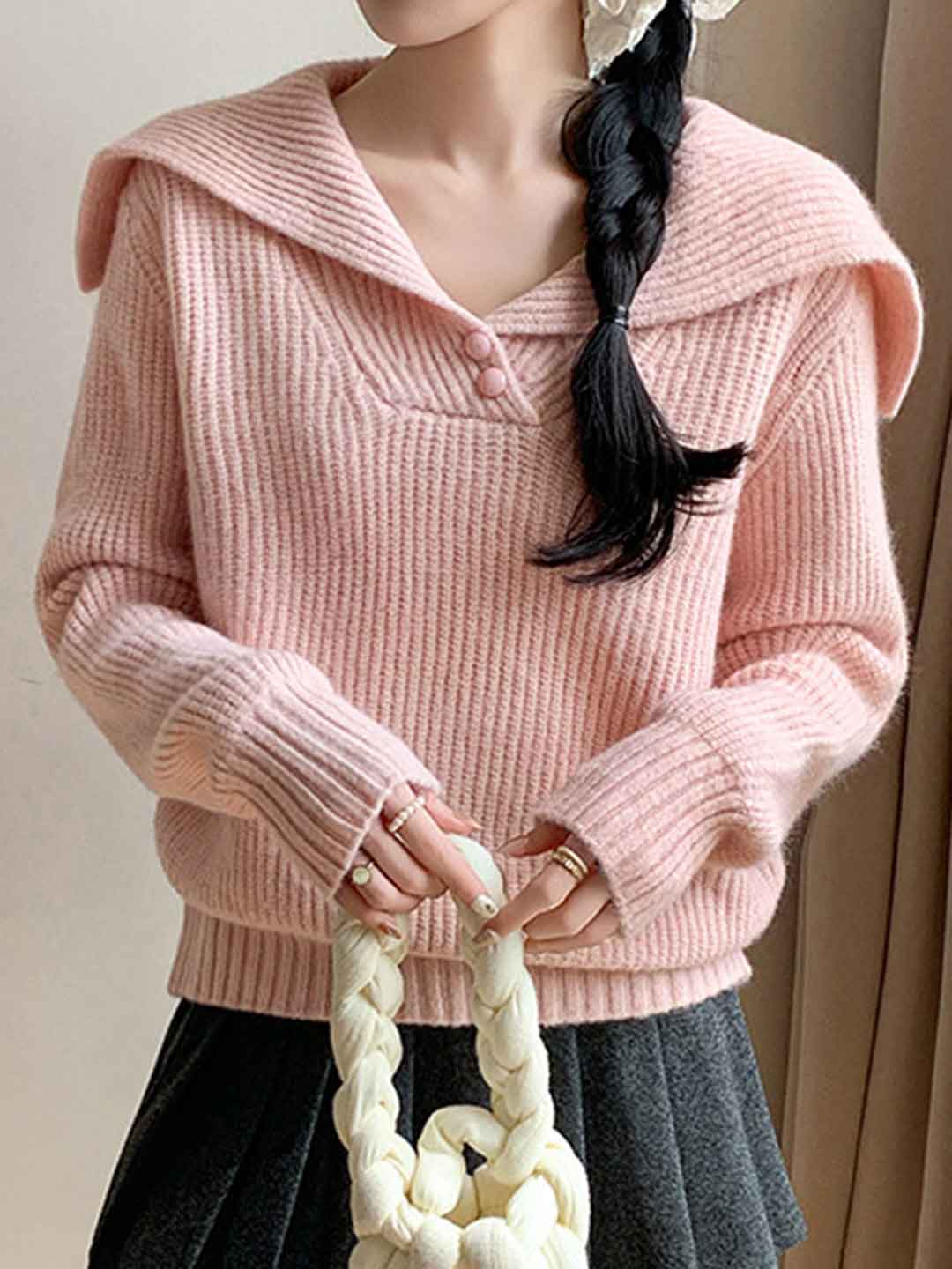 Chloe Vintage Lapel Solid Color Knitted Sweater