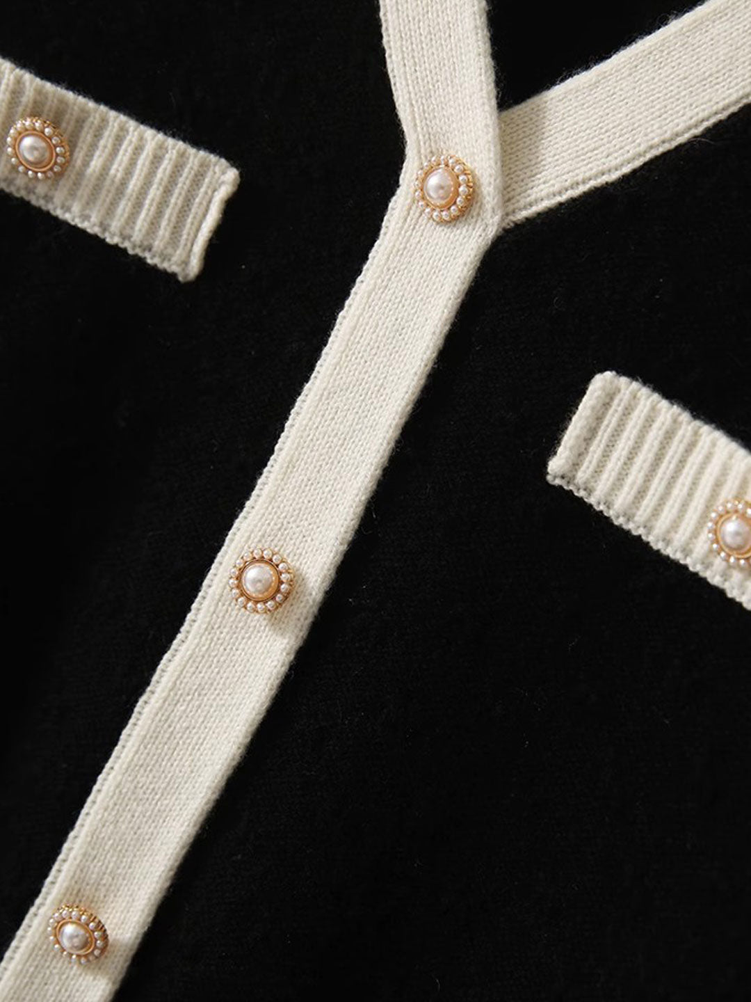 Hannah Casual V-Neck Textured Jacquard Knitted Sweater