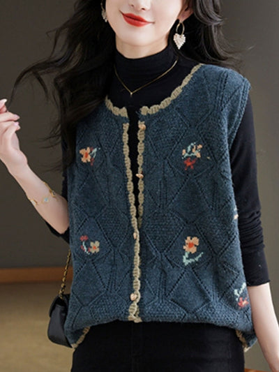 Elizabeth Loose Crew Neck Solid Color Knitted Vest